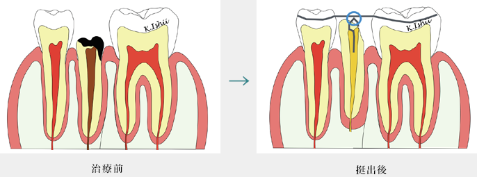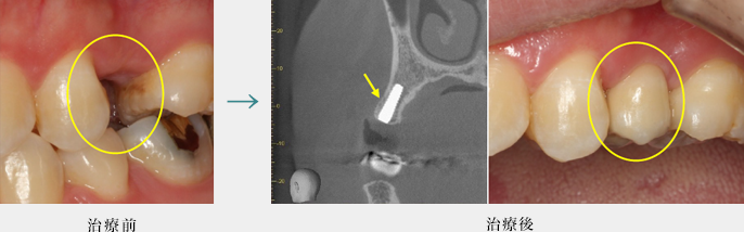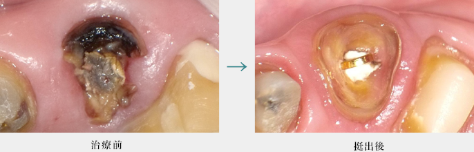 | 挺出による歯の保存 | 重度に虫歯が進行した歯でも 抜歯せずに温存する治療 |