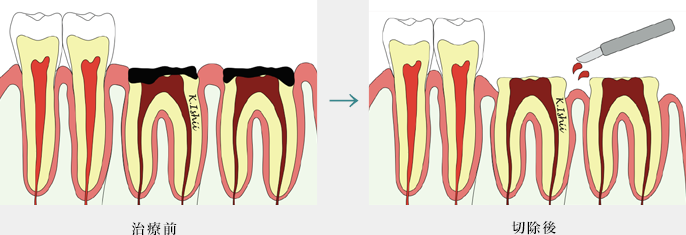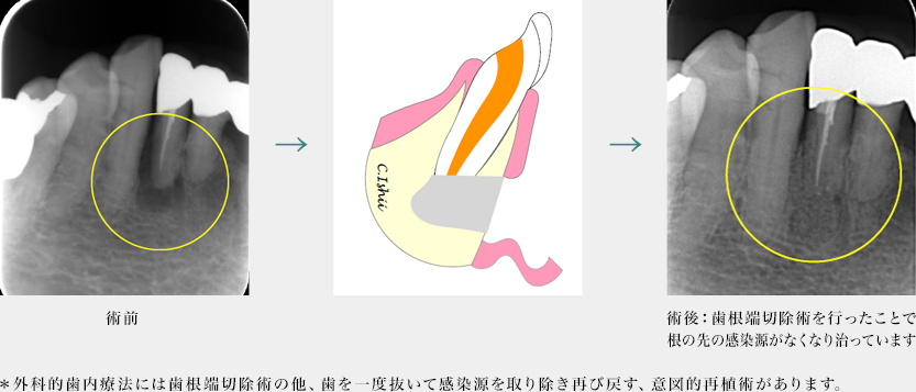 | 外科的歯内療法 | 外科的に根っこの先にアプローチ |